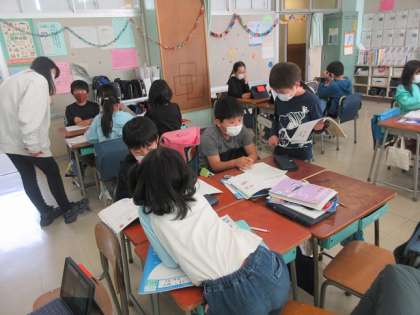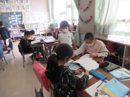 友だちに教えてもらったり、一緒に考え合ったりしながら学習してきたことを確かめています。