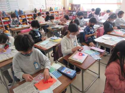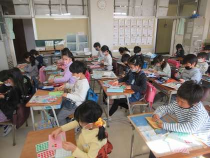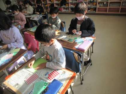 シールの色や大きさをもとに、貼り重ねるなど、様々な工夫が見られます。