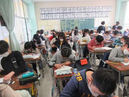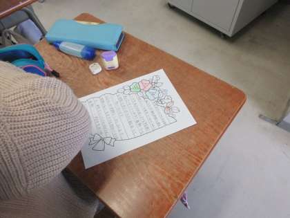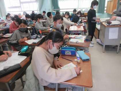 5年1組の教室をのぞくと、お手紙を書いていました。