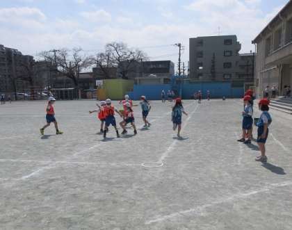 体育の時間ではクラスの友だちとの対戦でしたが、今日はほかのクラスのチームと対戦しました。最後まで楽しくできました。