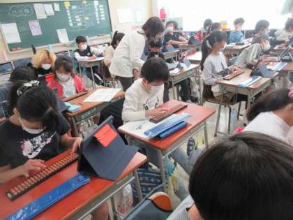 そろばんを使って計算をしています。