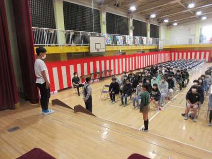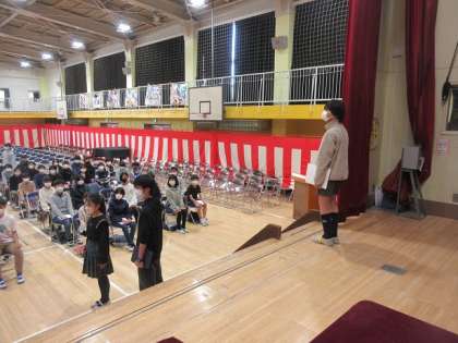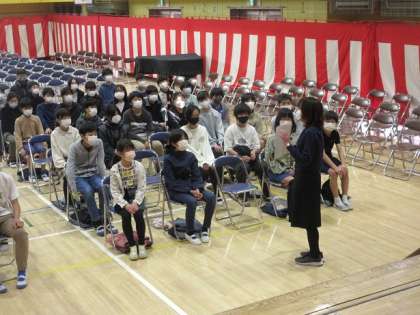 自席から出発し、壇上に上がり、証書を受け取り、自席に戻るまでの流れを確認しました。ポイントに担任が立ち、細かく指導しています。