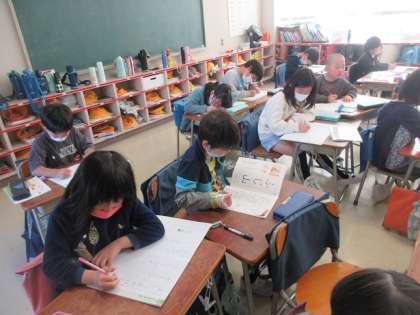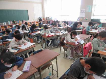 書写のノートを使い、一文字一文字、丁寧に書いています。