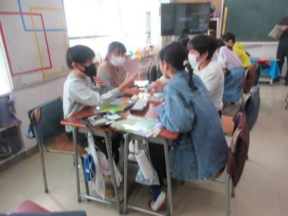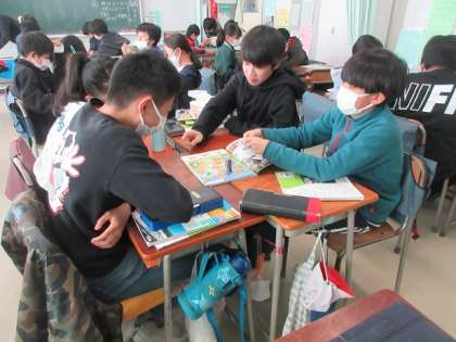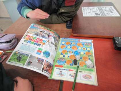 SDG’sへの理解を深めるため、教科書の巻末にあるすごろくを使っています。