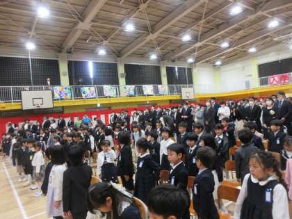 担任の先生や学校の先生方の紹介の後、6年生の歓迎の言葉や2年生のお祝いの映像など、1年生を全校で迎えるメッセージが続きました。