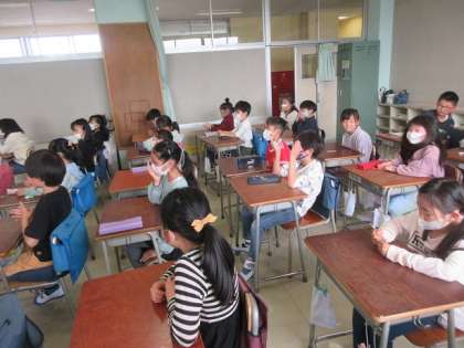 クラス替えをした3年1組では、自己紹介カードを利用して、友だちあてクイズをしています。友達のよいところたくさん見つけてください。