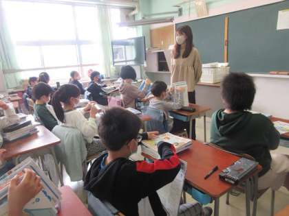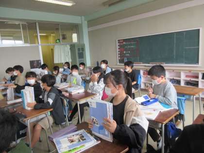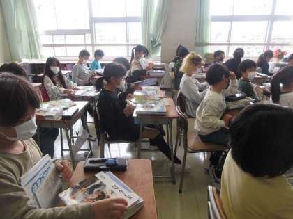 5年1組では、新しい教科書が子ども達の手元にあります。