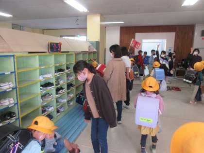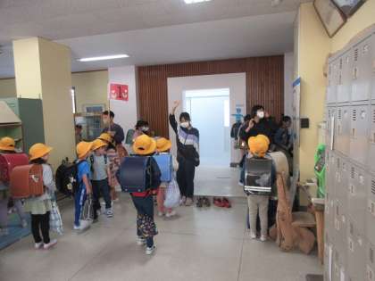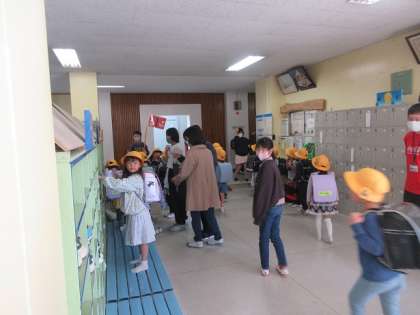 靴を入れたり、教室まで案内したり、1年生がスムーズに教室まで動けるようにしています。