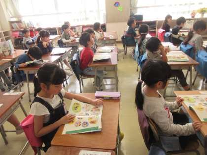1日の生活の様々な場面でのあいさつの仕方を考えています。