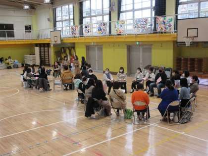 体育館では、4つの委員会が中での分担を決めています。