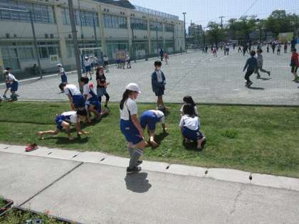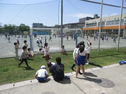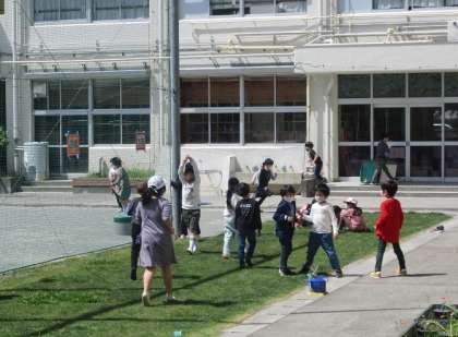 今日は天気も良く、暖かな日だったせいか、芝生の上に寝転がっている子や裸足で走りまわっている子がたくさんいました。みんな気持ちよさそうに過ごしていました。