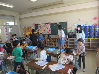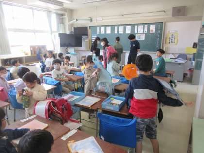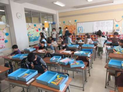作の上の道具箱やランドセルを整理して、自席で待ちます。