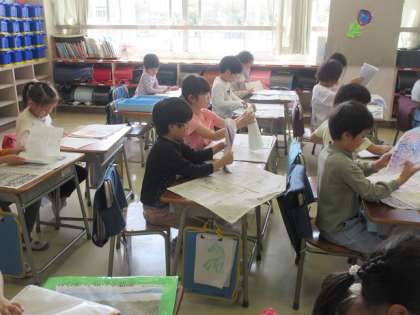 作った作品を大事に保管しておくのに、紙を二つ折りにし、その間に挟みます。