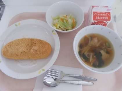 きなこあげパン コーンサラダ 肉団子入り春雨スープ 牛乳