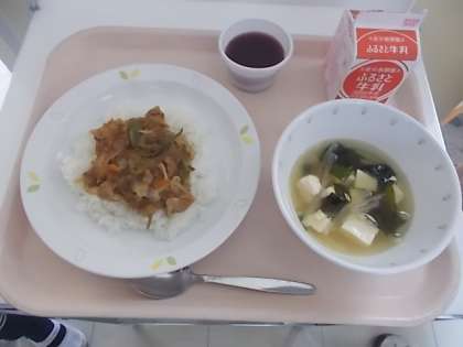 【こんだて】プルコギ丼 わかめスープ ぶどうゼリー 牛乳