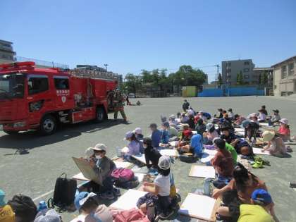 2年生は消防車を題材に写生会をしました。