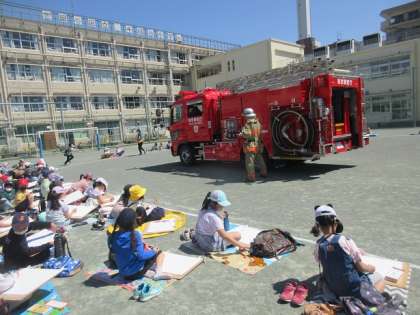 4月27日(木) 消防車が校庭に