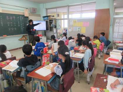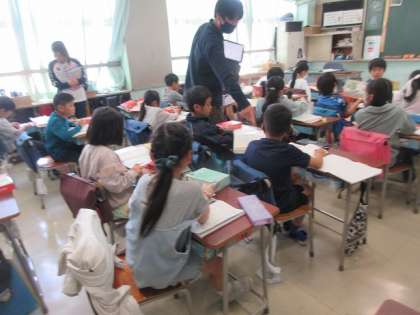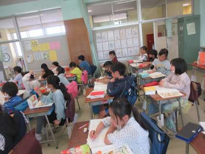 国語辞典を使い、読みが似ているけれど、意味の違う言葉を確かめています。