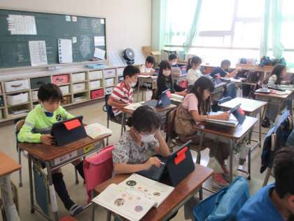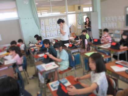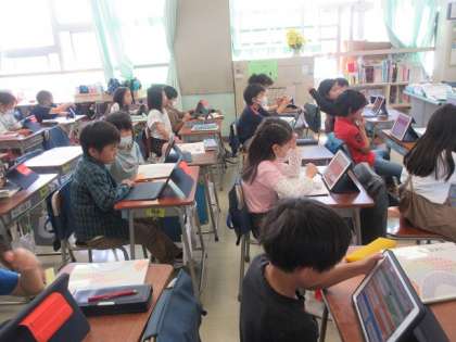 タブレットを使い、日本に古くから行われている年中行事を調べています。