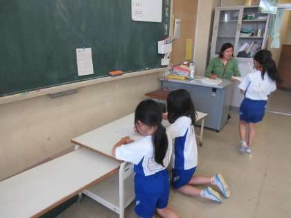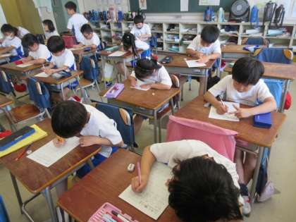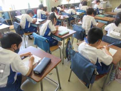 足し算の筆算の確かめをしています。落ち着いてやることが大切ですね。