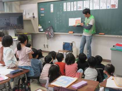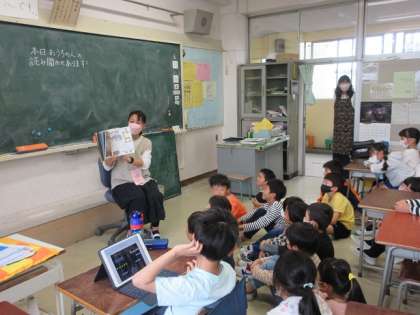 土曜の朝は、低学年のクラスに読み聞かせのボランティアで保護者の方に入ってもらうことがあります。1年1組、2年1組、2年2組の様子です。