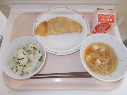 菜飯 ジャンボ餃子 中華スープ 牛乳
