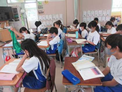 清少納言の「春はあけぼの」の詩を読みながらの学習です。