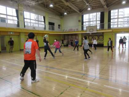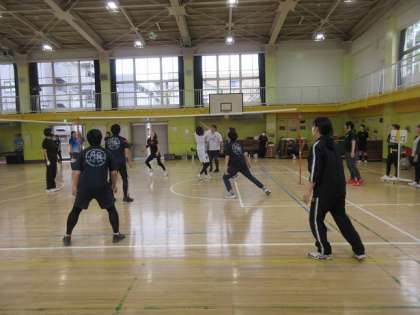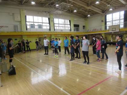 体育館では、Pバレー部の皆さんの企画で、ソフトバレーボール大会です。