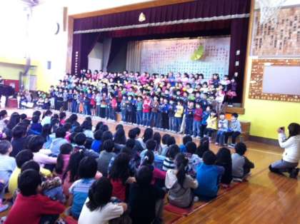 2月28日、6年生を送る会が行なわれました。千歳台小学校はじめての音楽会となりました。元気な明るい歌声に振り付けをつけたり、二部合唱のキレイなハーモニー、息のそろった合奏とどの学年も素晴らしい音楽を奏でてくれました。