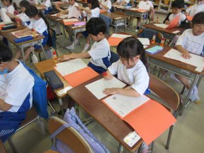 色画用紙に、やくそくやパスワードなどのこと描いたプリントを貼ります。