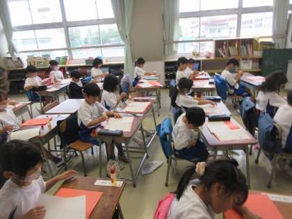 1年2組では、タブレットを使う時に必要なことをカードにしていました。