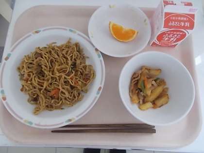 ソース焼き そばじゃが芋のきんぴら 清美 牛乳