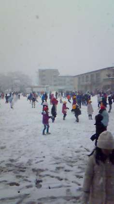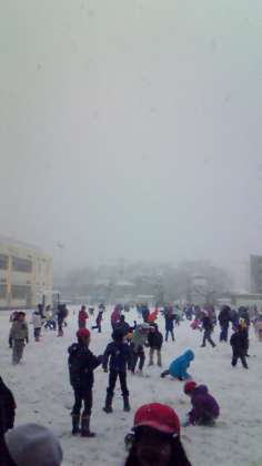 雪がたくさん降ったので、中休みも昼休みも…校庭で雪遊びをしました!