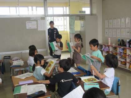 グループで音読です。一緒のグループの友だちと練習です。