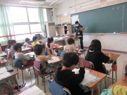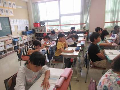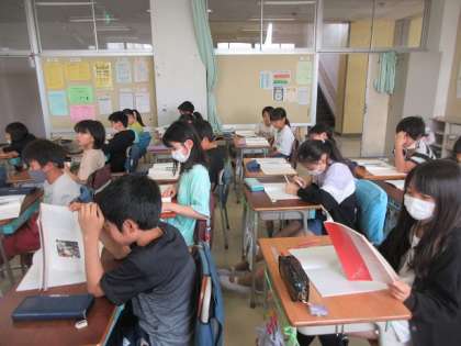 教材文の音読をしています。全体の要旨を理解するためにも、しっかりと音読できるとよいですね。