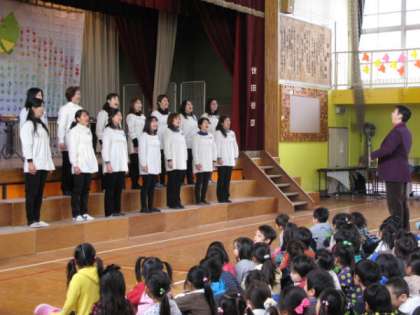 卒業を間近に控える6年生へ向けて、各学年とめばえの会の方々による合唱発表がありました。