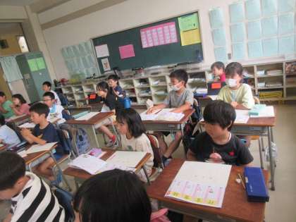 漢字の成り立ちについて、ワークブックを使って学習します。