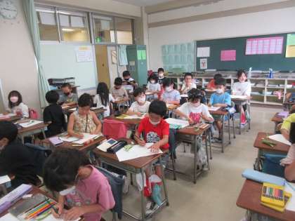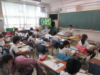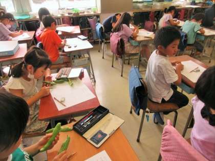 今日の献立にある「そらまめ」を2年生がさやむきをしました。