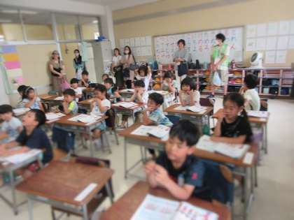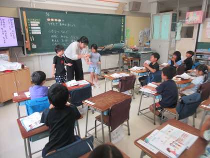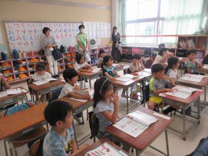 リズムに合わせて、手拍子を隣のお友達とたたきます。