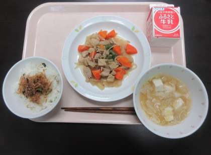 給食に出るふりかけは、いつも特製のもので、学校が進みます。今日のふりかけにも甘辛く味付けをした、じゃこや削りぶしが混ざっていました。