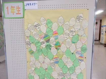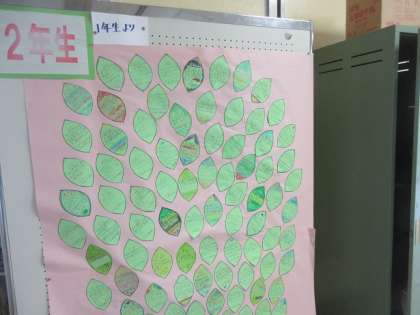 思いやりの木を各学年の靴箱の前に、パネルで掲示されています。