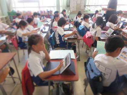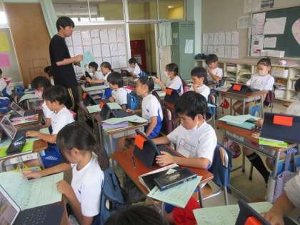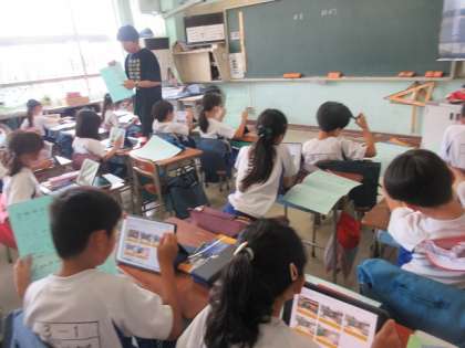 鉄棒の学習が始まるので、タブレットで学習のする技の動画を確認しました。