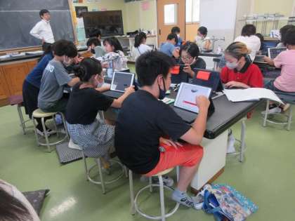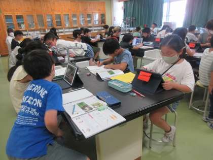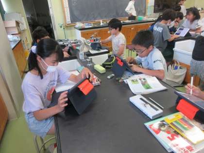 メダカの学習が終わり、キュビナを使って学習内容を復習しています。
