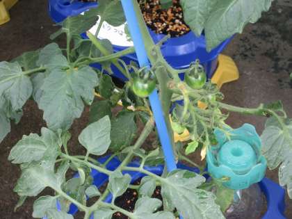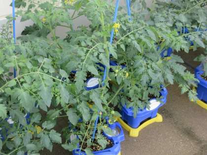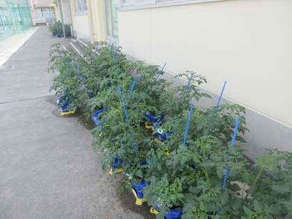 東校舎に沿って育てている2年生のミニトマトが大きく育っています。
