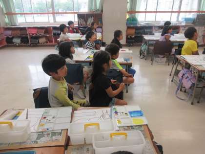 絵具と水の量を変えて、色の濃さを変えて塗ります。