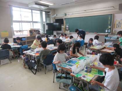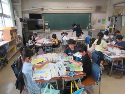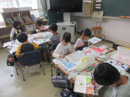 画用紙に印刷された、Tシャツに合わせて絵の具を塗ります。