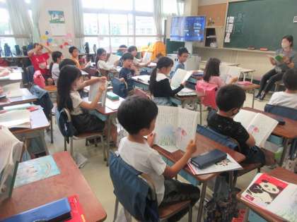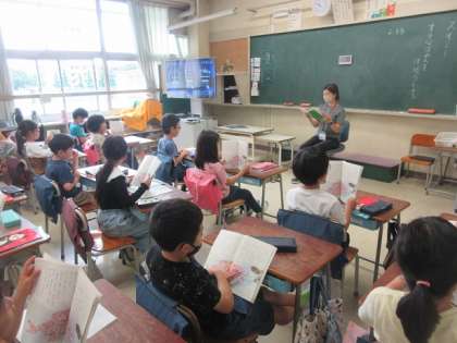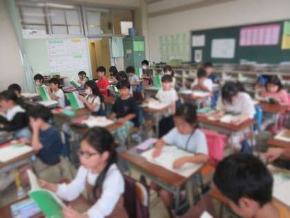 友だちが読んでいるときにも、教科書を見ながら、文を追いかけています。