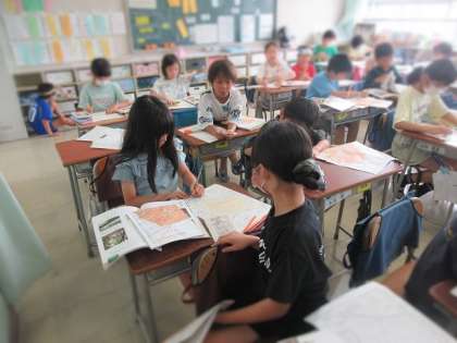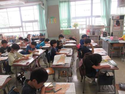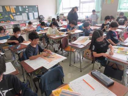 世田谷区全域の地図を広げ、区内にどんなところがあるのかを探しています。