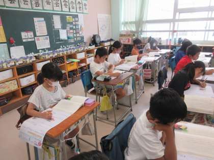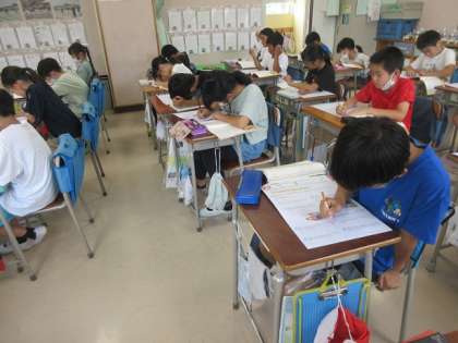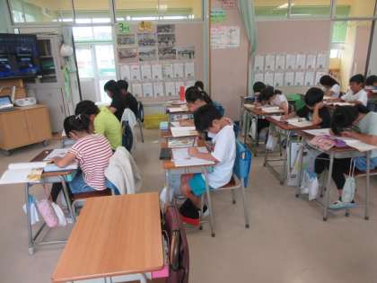 4年4組の国語のテストの時間です。
