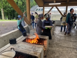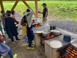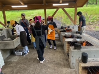今日の夕食はみんなで作るカレーです。班で協力して作ります。